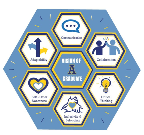 The Vision of the Graduate outlines the community’s and school district’s goals and expectations for each student. By specifying the key skills, attitudes, and dispositions, the Vision of the Graduate identifies the desired outcomes for every student who graduates from Andover Public Schools, ensuring they are equipped with academic excellence and the essential skills needed to collaborate and thrive in an interconnected world.